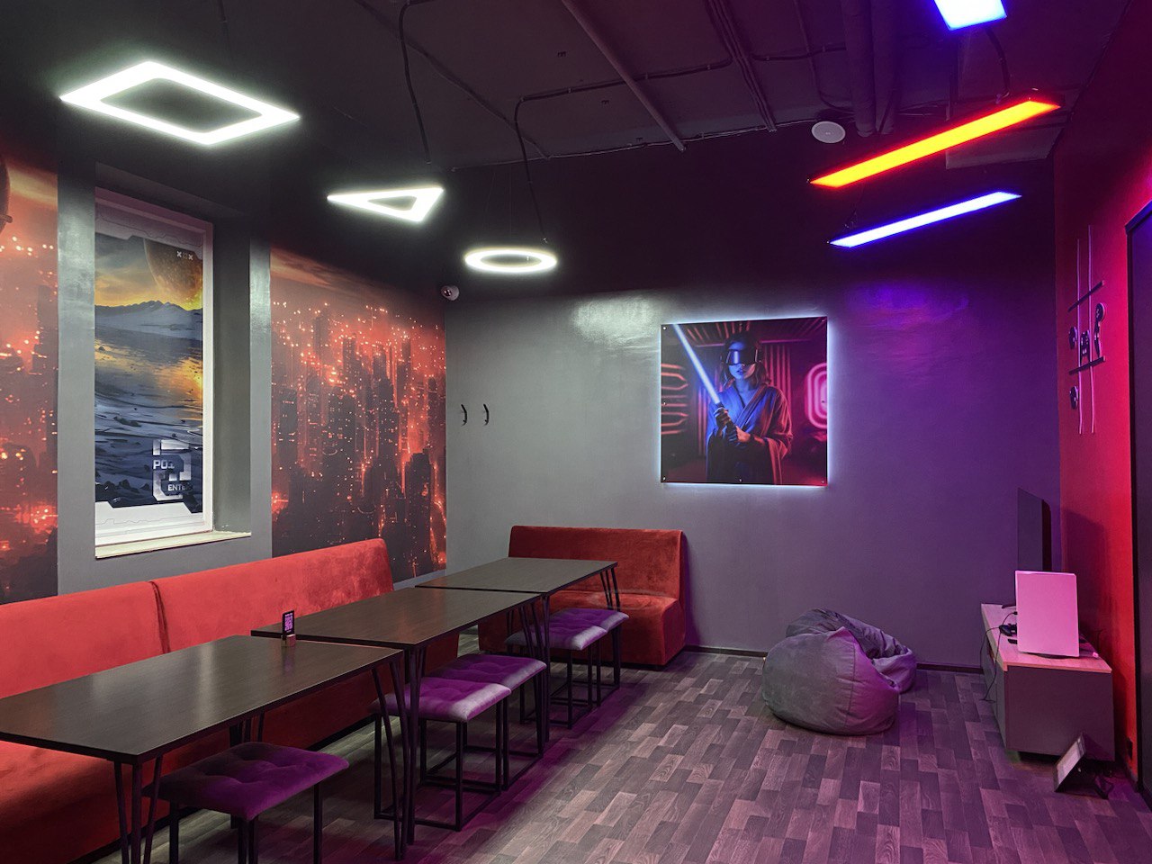 * лаунж зоны с PS5 и TV 4K, где можно отметить день рождения или корпоратив